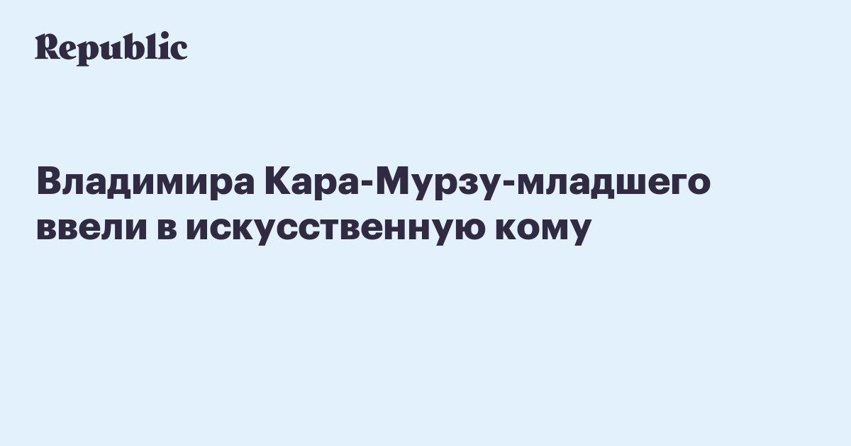 Врачи на неделю ввели координатора «Открытой России» Владимира Кара-Мурзу-младшего в искусственную кому. Об этом РИА Новости сообщил его отец.