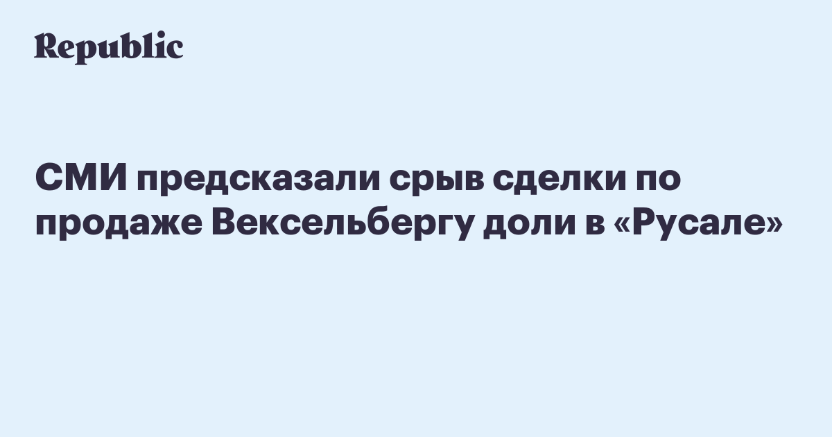 СМИ предсказали срыв сделки по продаже Вексельбергу доли в «Русале»