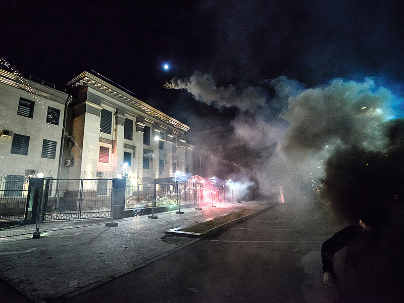 По делу о нападении на посольство России в Киеве в марте 2016 года следователи подтвердили причастность к нему бывшего сотника "женской сотни" Майдана Ирмы Крат и двух бывших бойцов батальона "Айдар" Сергея Новикова и Александра Высоты. Им также заочно предъявлено обвинение по ч. 2 ст. 360 УК РФ. Они забросали посольство "коктейлями Молотова", по данным следствия, "преследуя цель осложнения международных отношений между Россией и Украиной". В настоящее время следователи проверяют обвиняемых по эпизоду 2016 года на причастность к событиям 2014 года.