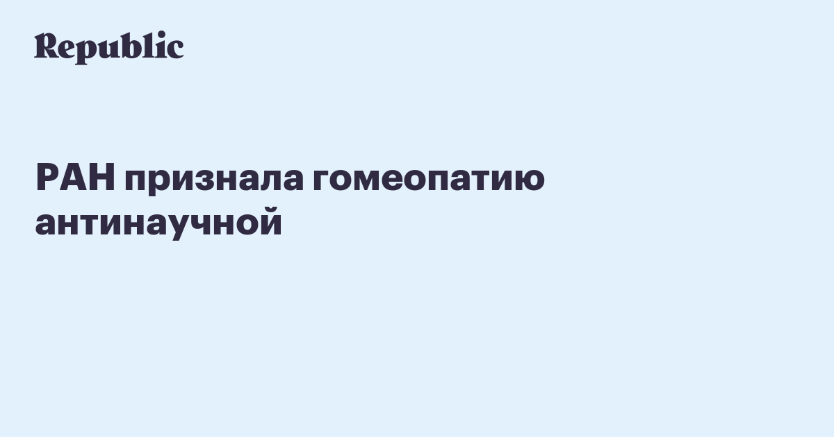 Комиссия по борьбе с лженаукой при президиуме Российской академии наук (РАН) признала лечение гомеопатическими препаратами не имеющим под собой «научных основ и обоснований».