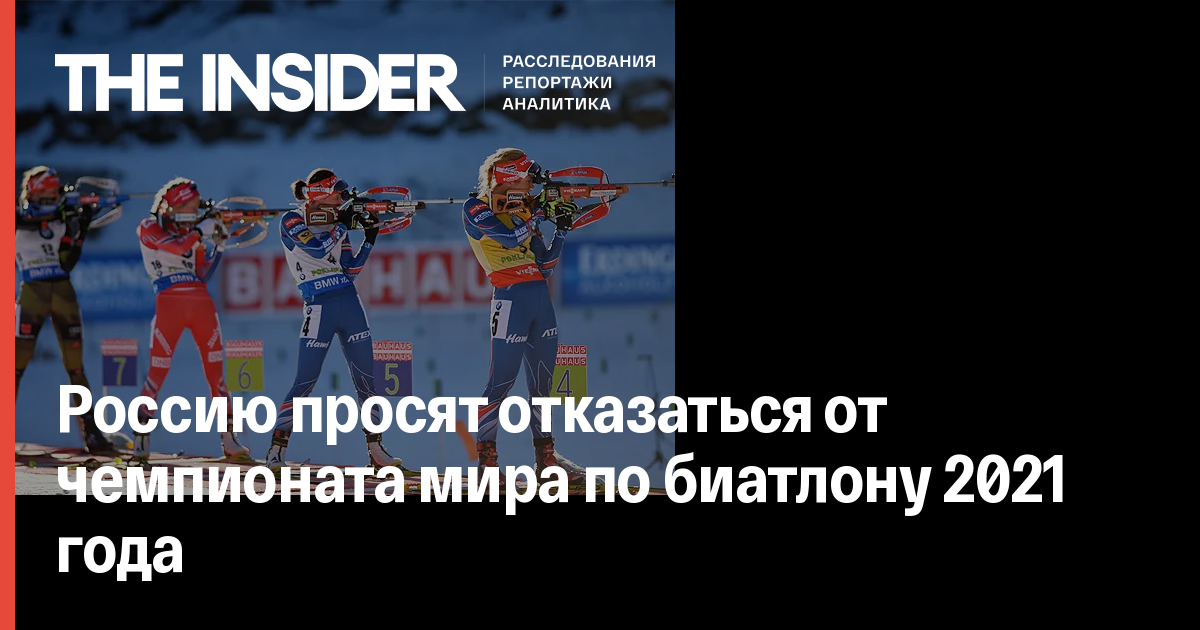 Международный союз биатлонистов (IBU) предложит России отказаться проводить чемпионат мира по биатлону в 2021 году, сообщает ТАСС со ссылкой на первого вице-президента IBU и вице-президента Союза биатлонистов России Виктора Майгурова.
