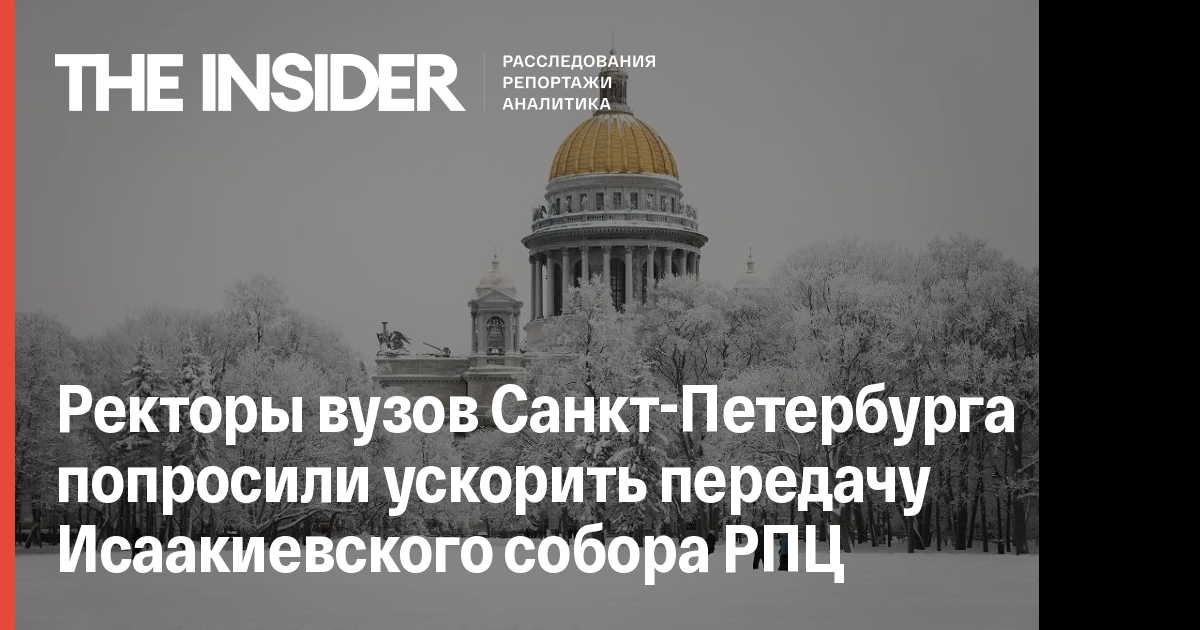 Руководители петербургских вузов обратились к губернатору Георгию Полтавченко с просьбой передать Исаакиевский собор РПЦ до Пасхи, сообщает «Фонтанка. Ру». Обращение они подписали на приеме у председателя заксобрания Вячеслава Макарова.