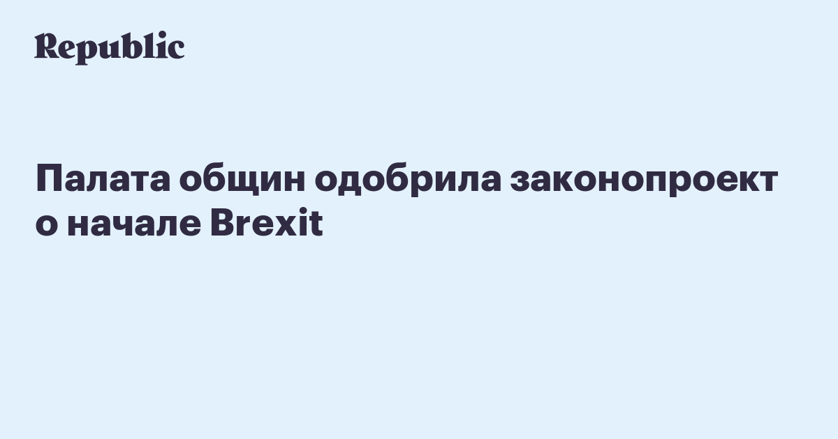 Палата общин британского парламента одобрила законопроект о начале выхода Великобритании из ЕС, передает Reuters.