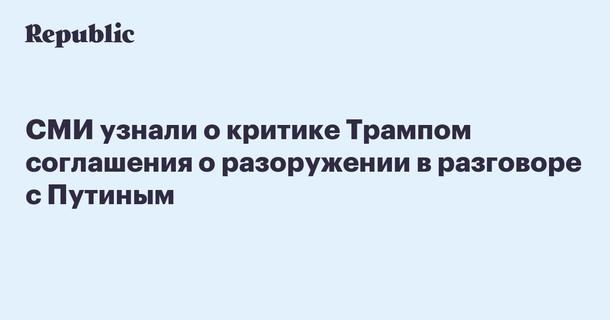 СМИ узнали о критике Трампом соглашения о разоружении в разговоре с Путиным