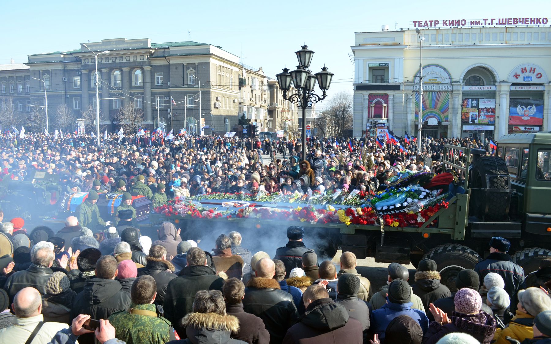 Фото: Павел Семчук / Коммерсантъ 10 февраля в Донецке похоронили командира батальона ДНР «Сомали» Михаила Толстых, известного под позывным Гиви. Церемония прощания состоялась в здании Донецкого государственного академического театра оперы и балета. РИА Новости сообщает, что около театра собрались более 10 тысяч человек. По данным РБК, на церемонию пришли более одной тысячи.