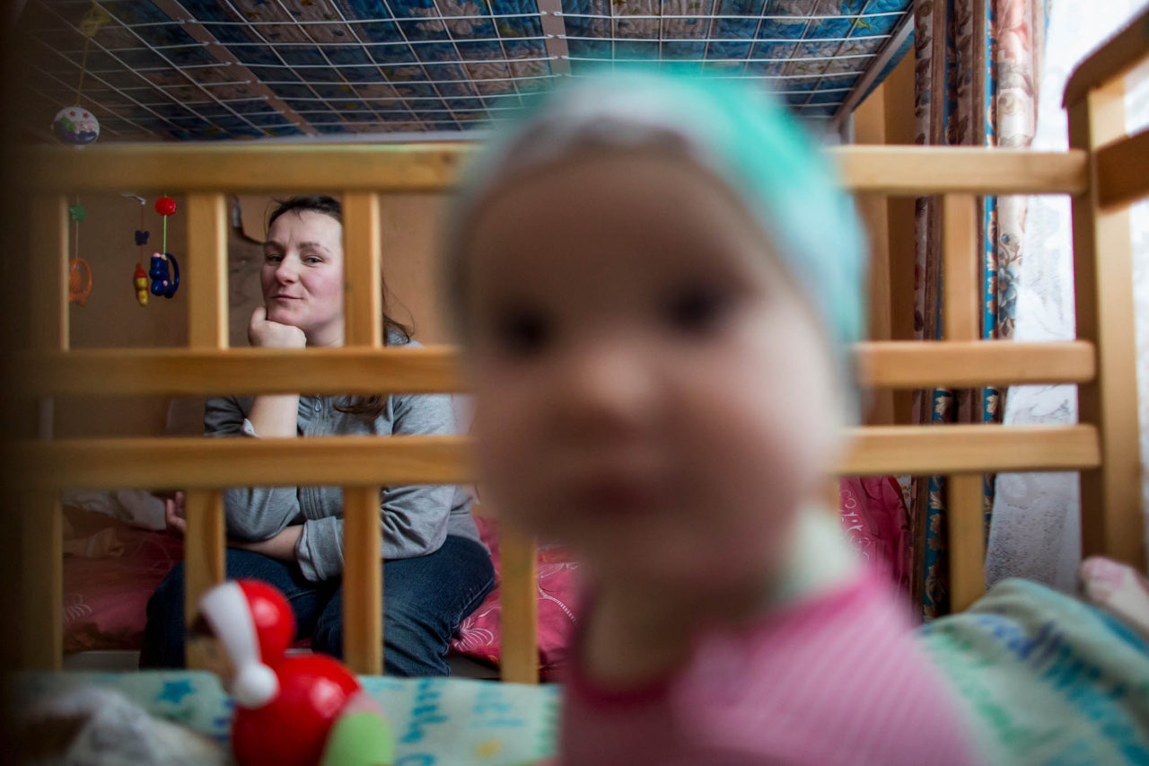 В одной из комнаток между двухъярусными кроватями теснится детская кроватка. Там спит десятимесячная Вера с зеленой от ветрянки головой.