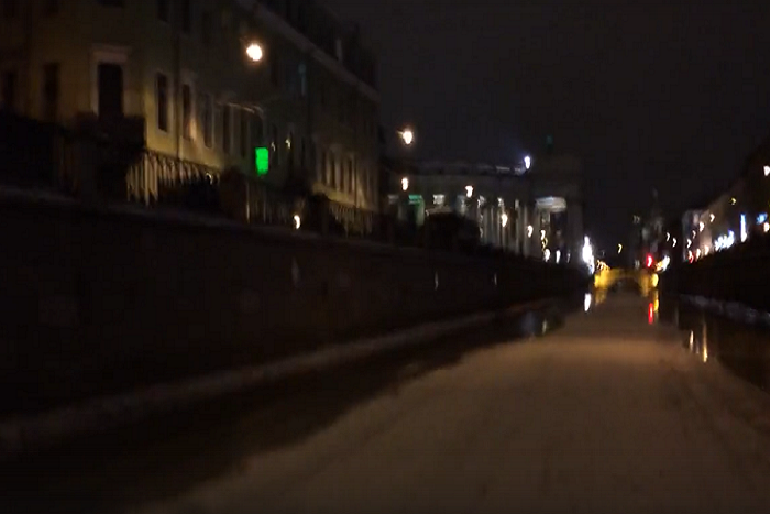 Байкер Михаил Михин прокатился на мотоцикле по замерзшим каналам Петербурга.
