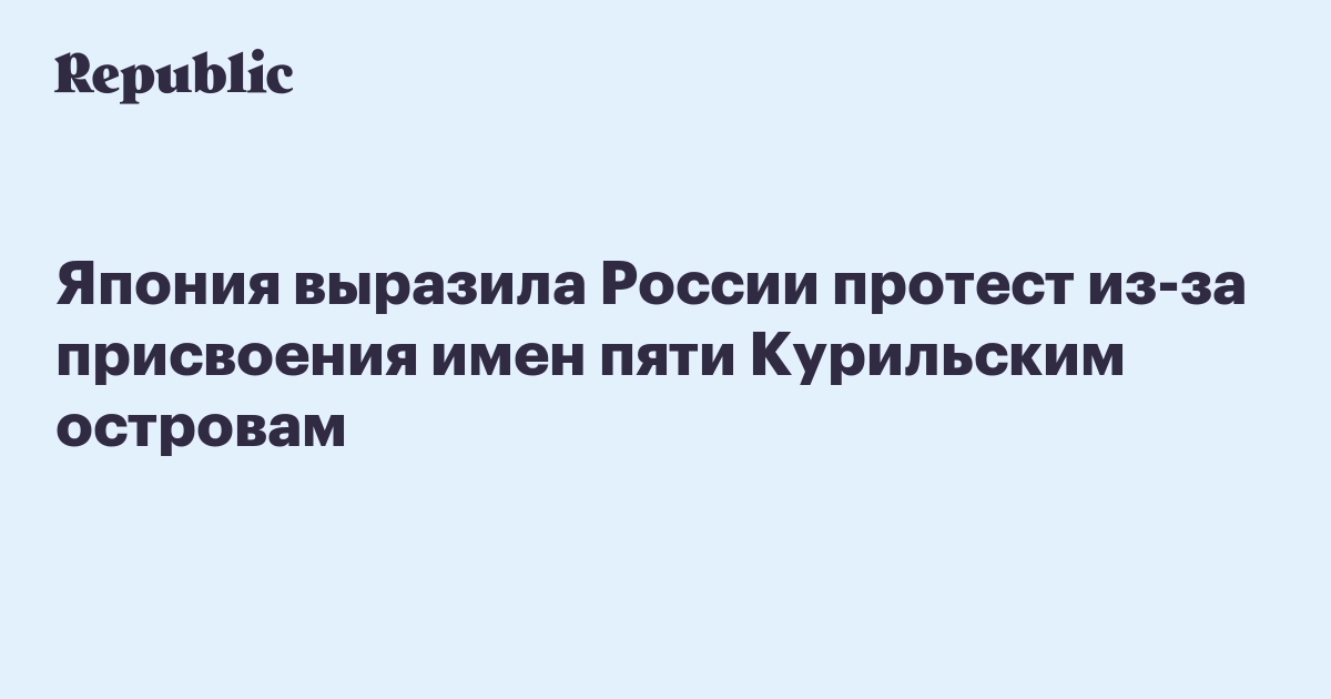 Правительство Японии направило протест Москве в связи с присвоением имен пяти островам Курильской гряды. Об этом сообщает ТАСС.