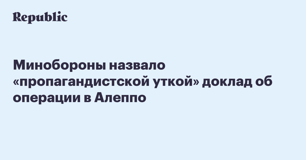 Минобороны назвало «пропагандистской уткой» доклад об операции в Алеппо