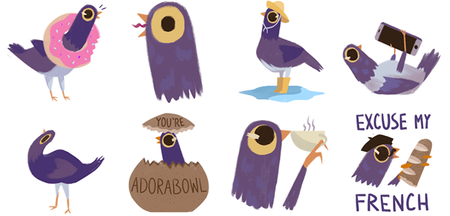 Это голубь. Его нарисовала иллюстратор Сид Уэлер из США. В сентябре 2016 года Уэлер предложила Apple набор стикеров Trash Dove для стикерстора в iMessage. В начале февраля 2017-го стикеры появились и в фейсбуке (в российской версии мессенджера набор называется «Голуби-декаденты»). Стикеры анимированные (двигаются при наведении курсора); чаще всего пользователи фейсбука используют голубя, мотающего головой.