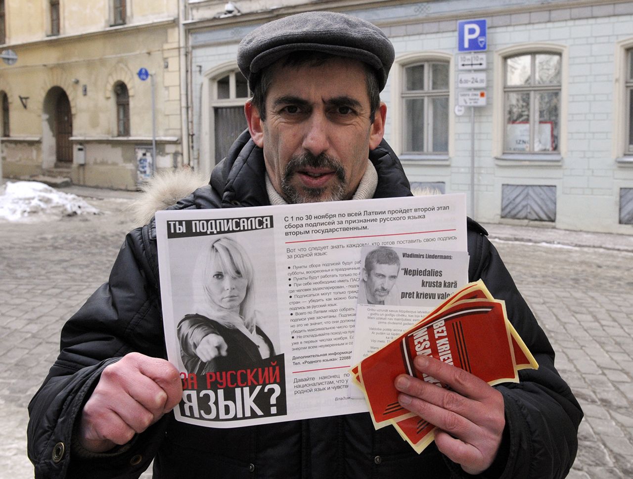 У языкового референдума 2012 года было несколько организаторов, но в первую очередь это заслуга Владимира Линдермана. Линдерман — бывший комиссар латвийского отделения Национал-большевистской партии Эдуарда Лимонова (в России эта партия признана экстремистской и запрещена еще в 2007 году). В Латвии его обвиняли в хранении взрывчатки и подготовке государственного переворота, поэтому в середине 2000-х он находился в России. В 2008 году Линдермана заставили покинуть Москву. В Риге его взяли под стражу, но он выиграл суды — и наиболее тяжелые обвинения с активиста сняли. Оказавшись на свободе, Линдерман стал одним из руководителей общества «За родной язык», которое и начало сбор подписей за поправки в Конституцию — о придании русскому языку статуса второго государственного.