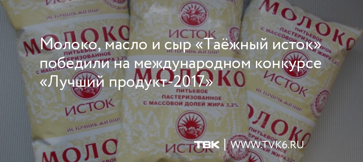 Молоко, масло и сыр «Таёжный исток» победили на международном конкурсе «Лучший продукт-2017»