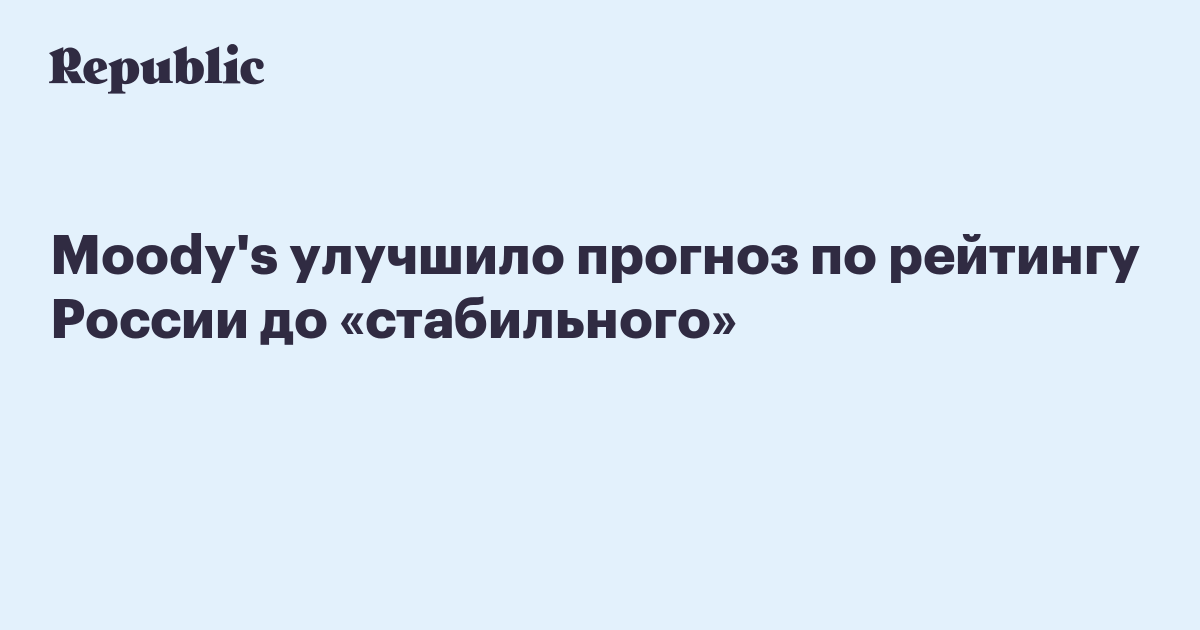 Международное рейтинговое агентство Moody’s изменило прогноз по суверенному рейтингу России с «негативного» до «стабильного». Об этом сообщается на сайте агентства. Сам рейтинг оставлен на спекулятивном уровне «Ва1».