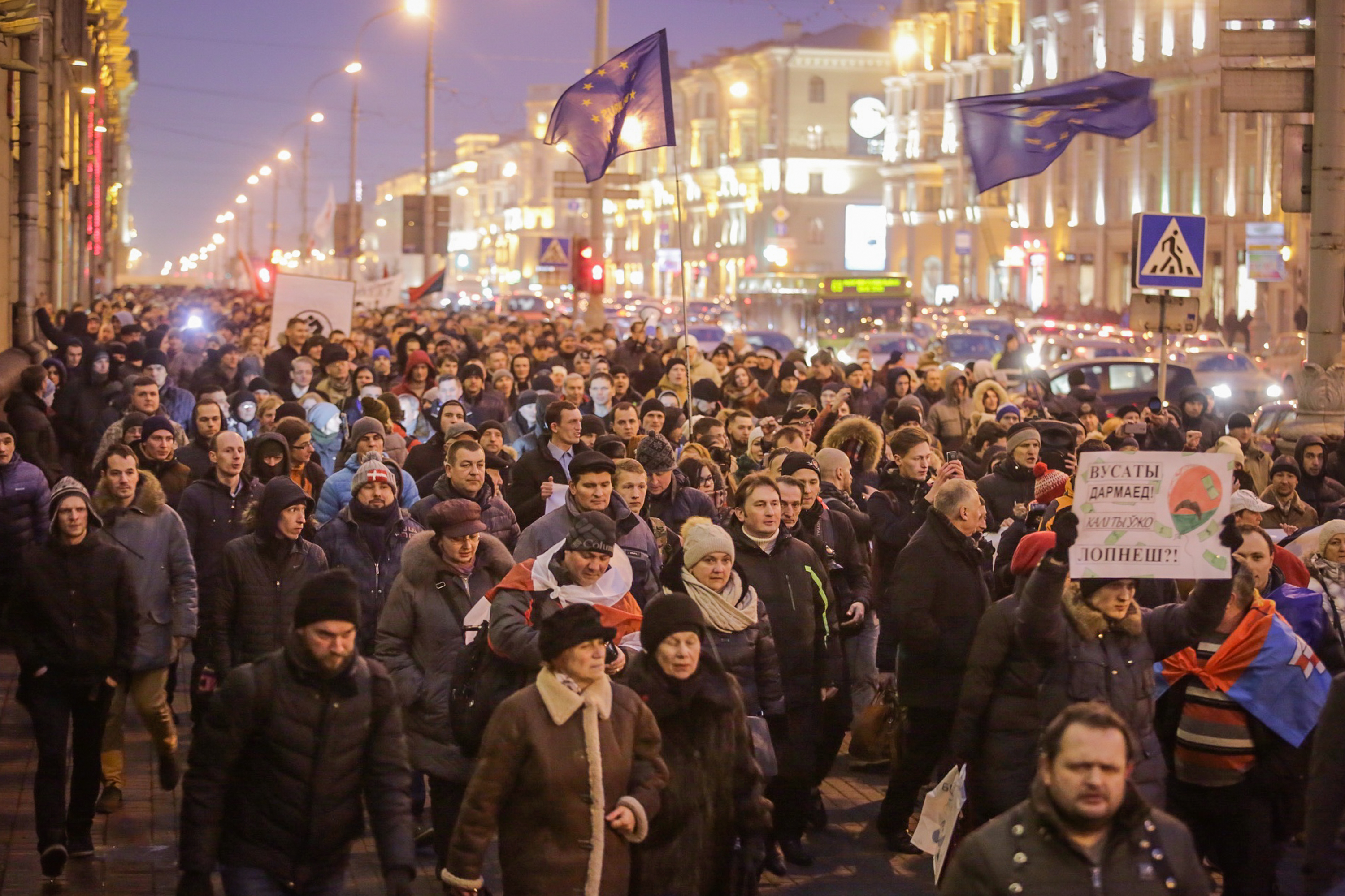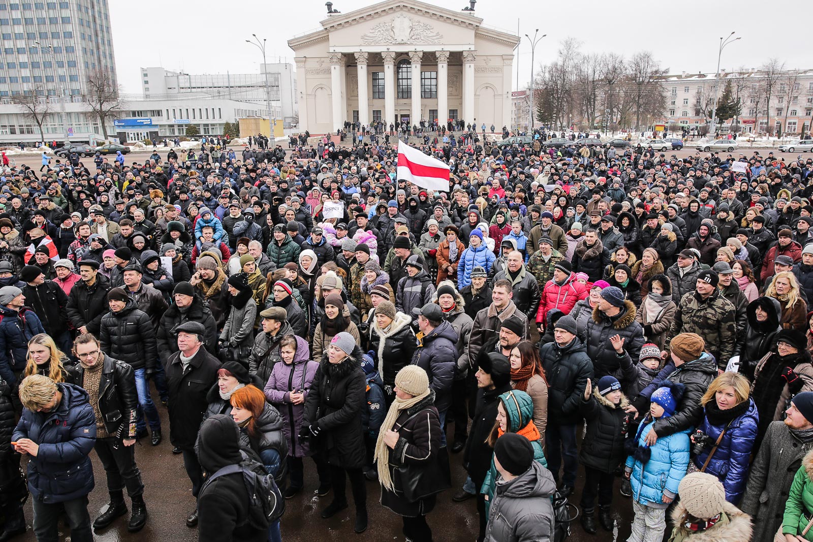 За несколько дней до этой даты, 17–19 февраля, жители белорусских городов вышли на самые массовые за последние годы акции протеста против "налога на тунеядство". Причем вышли не только в Минске, но и в других городах. В Гомеле, расположенном на юго-востоке Белоруссии, в 50 километрах от границ с Россией и Украиной, в акции участвовали более 2 тысяч человек – таких массовых протестов здесь не было даже не с 2000-х, а с 90-х годов.