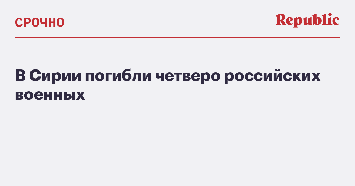 В Сирии погибли четыре российских военных советника и двое ранены, сообщает «Интерфакс» со ссылкой на Минобороны РФ.