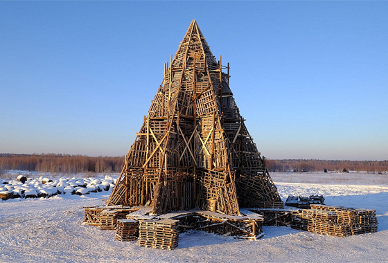 Вечером 25 февраля в арт-парке «Никола-Ленивец» у деревни Никола-Ленивец Калужской области будет сожжен новый объект Николая Полисского «Пирамида» высотой около двадцати метров.