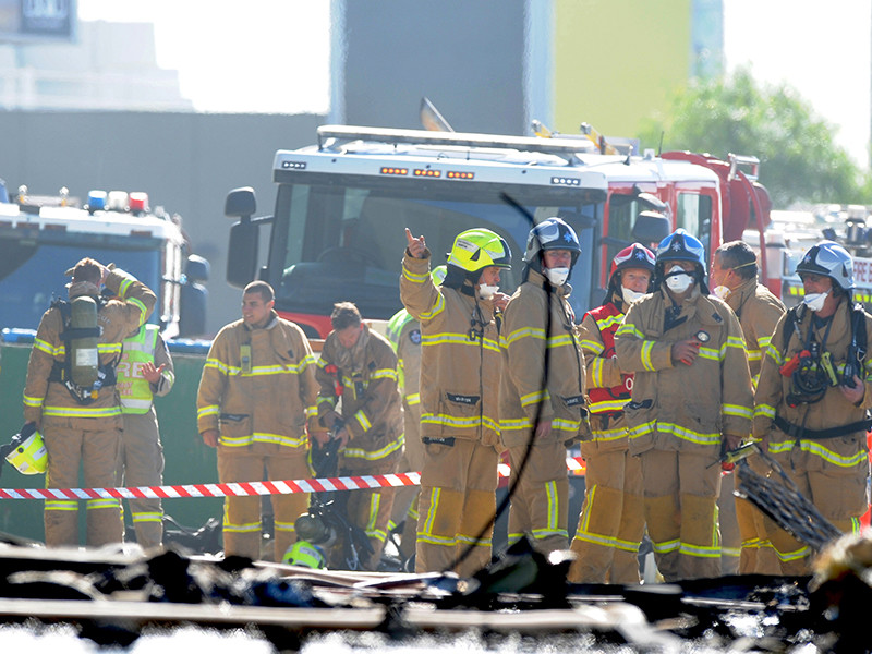 Пожарные продолжают вести борьбу с огнем в торговом центре DFO. Крушение произошло около 9:00 по местному времени (01:00 по Москве). Торговый центр должен был открыться в 10:00, поэтому в нем не было посетителей в момент катастрофы.