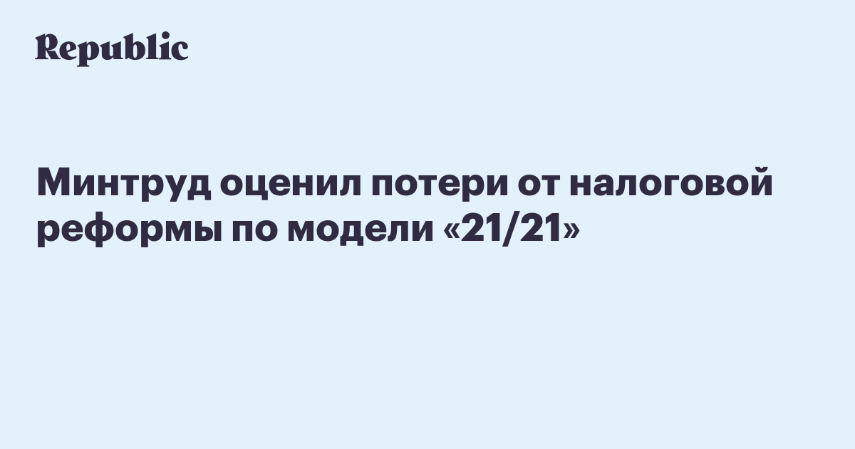 Минтруд оценил потери от налоговой реформы по модели «21/21»