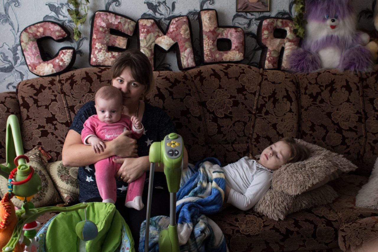 Алине Оганесян три года и девять месяцев, она живет на окраине Вязьмы. Ее папа работает охранником, мама сидит дома с младшей сестрой — четырехмесячной Соней. Родители взяли кредит, чтобы выкупить тесную, уютную однушку в общежитии. Единственную спальню поделили пополам — отгородили родительскую часть (по совместительству еще и гостиную) от детской. Алина спит на кухне, Соня — в детской. В гостиной помещается только диван с пятью подушками с буквами, складывающимися в слово «Семья», — подарок мамы папе на юбилей. В детской — кроватка, шкаф с детской одеждой, куклы и ксерокс. Для семьи, в которой два ребенка имеют редкое генетическое заболевание, это одно из самых необходимых капиталовложений.