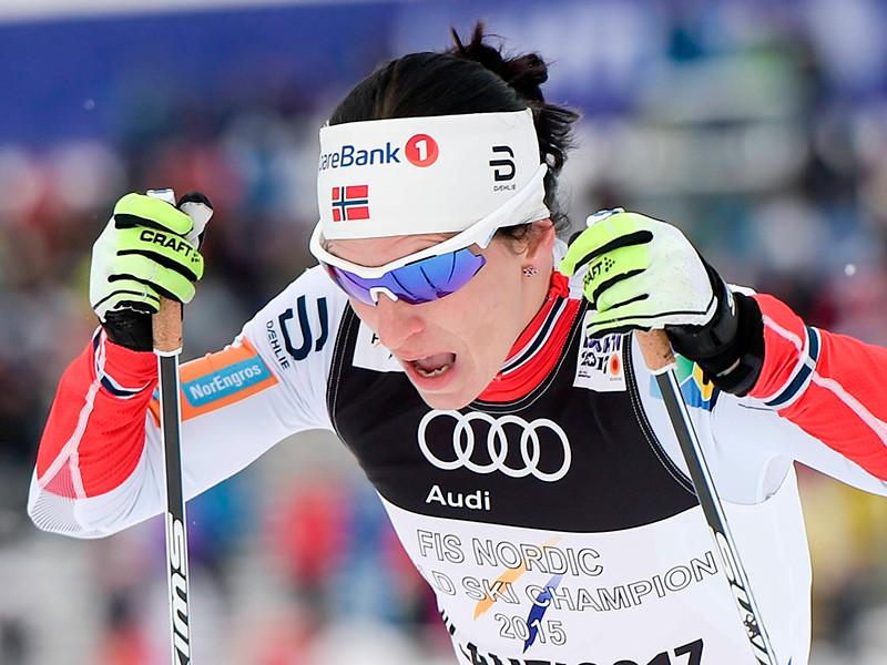 Норвежка Марит Бьёрген победила в скиатлоне на чемпионате мира по лыжным видам спорта в финском Лахти, преодолев дистанцию 7,5 км классическим ходом + 7,5 км свободным стилем за 37 минут 57,5 секунды.