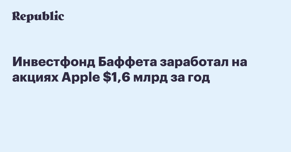Согласно опубликованному 25 февраля ежегодному письму Баффета акционерам, Berkshire в прошлом году потратила на покупку 1,1% акций производителя iPhone около $6,75 млрд. На закрытии торгов 24 февраля указанный пакет оценивался более чем в $8,3 млрд.