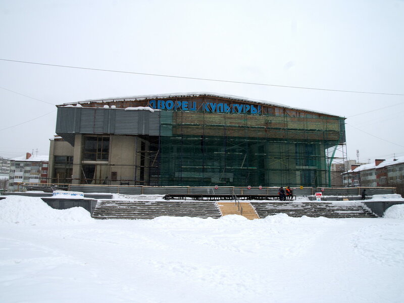 Тут на днях глава Коми, Гапликов в своем докладе заявил: «В Ухте в рамках сотрудничества с обществом «Газпром трансгаз Ухта» отремонтирован Городской дворец культуры». Я как-то не очень часто хожу в ГДК поэтому, может, что-то и пропустил, но, проходя мимо на днях, вдруг вижу — фасад здания в лесах, внутри тоже идут какие-то работы, временный шатер над кровлей как стоял так и стоит, уже который год. По моему ремонт не сделали, а только начали делать, после слов главы.