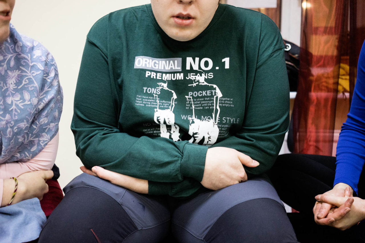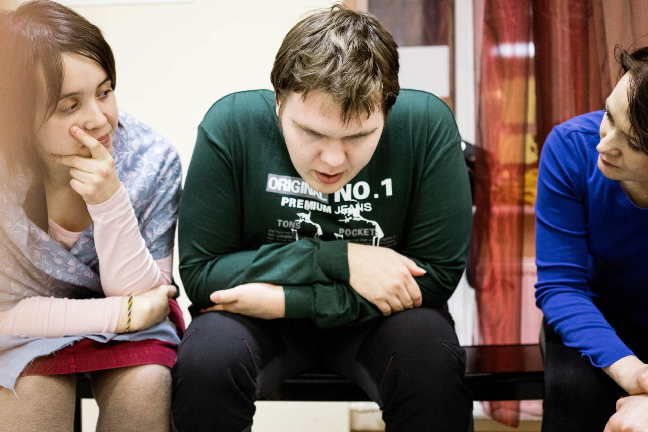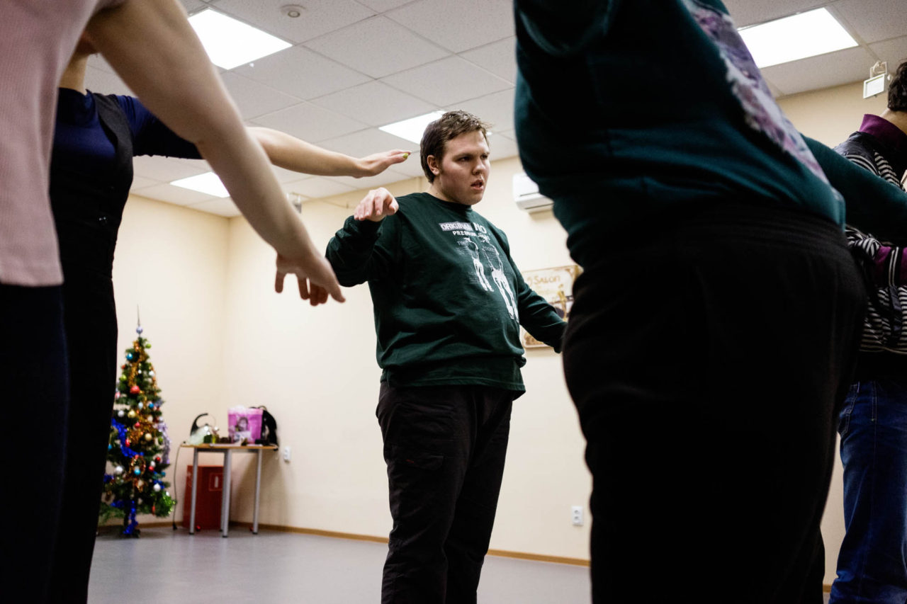 Женя на занятии по театральному мастерствуФото: Алина Иноземцева для ТД Аутизм нам поставили, только когда мы поступали в школу. Есть такой профессор Иванов, 1913 года рождения. Он единственный в Петербурге занимался детьми с аутизмом. И он как раз курировал нашу первую школу. И вот, когда мы пришли к нему на собеседование, он увидел Женьку и сказал: «Ой, это наш ребенок! Это чистый аутист». Тогда я в первый раз услышала этот диагноз. В 2000 году это было.