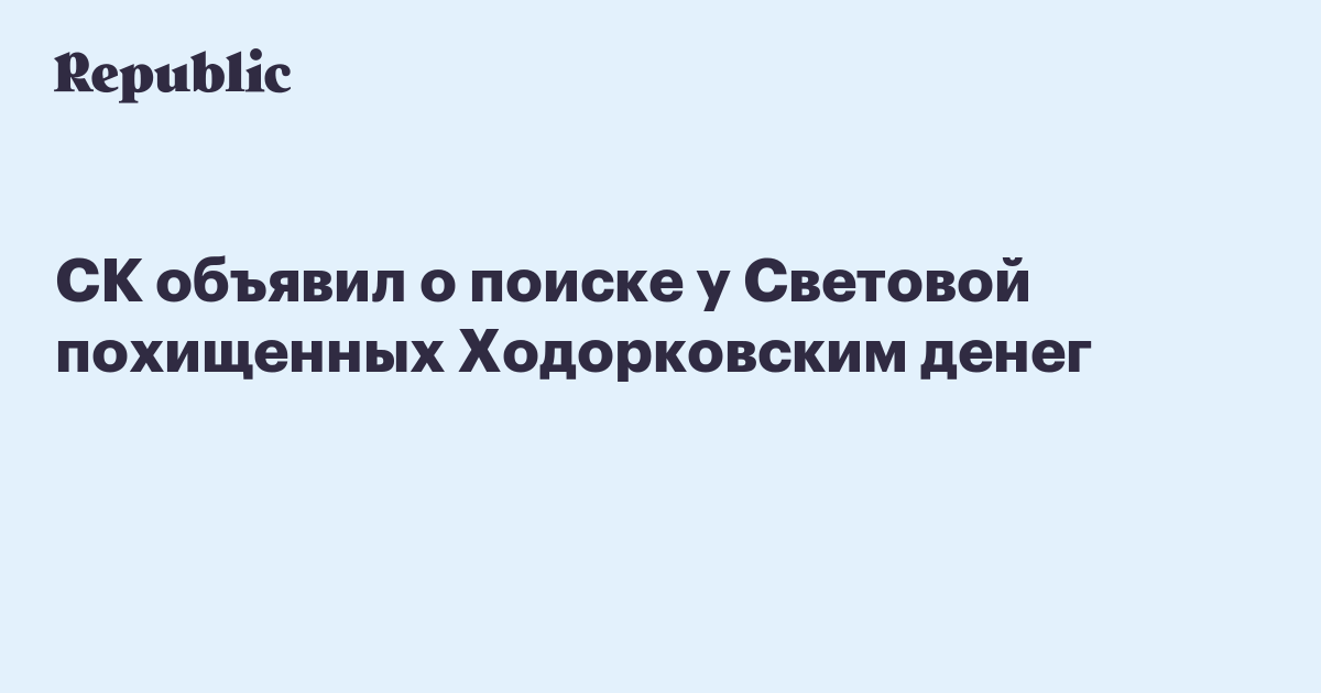 СК объявил о поиске у Световой похищенных Ходорковским денег