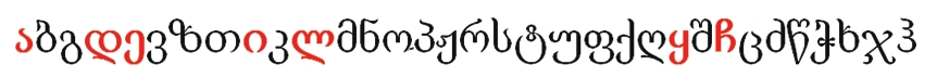 но ყ (800) и ჩ (1000) сдвинуты на одно место к началу, видимо, потому что между ლ (30) и ყ (800) не хватает еще одной буквы.