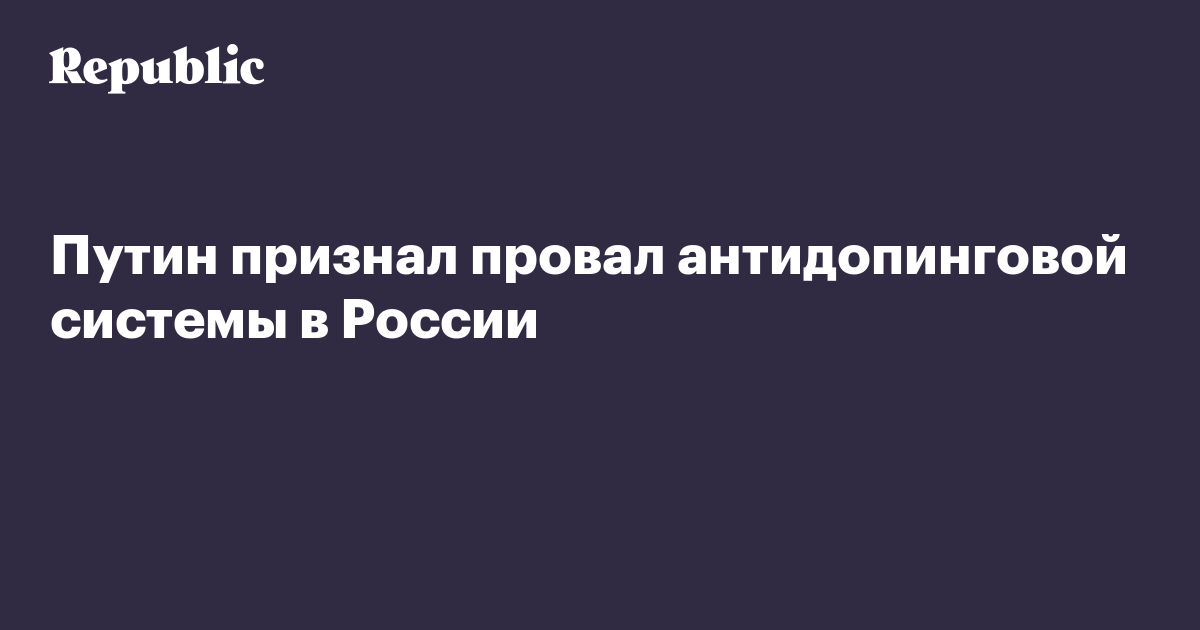 «Надо признать, что у нас есть достоверные, выявленные случаи допинга. Это абсолютно неприемлемо, и это значит, что существовавшая до сих пор российская система контроля за неприменением допинга не сработала, и это наша вина. Нужно об этом сказать прямо, и это признать», – отметил глава государства.