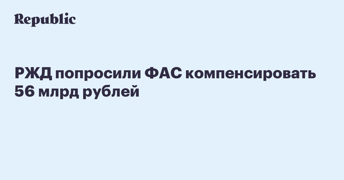 РЖД попросили ФАС компенсировать 56 млрд рублей