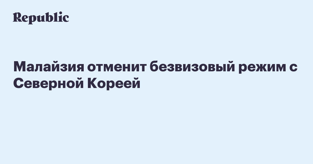 Власти Малайзии сообщили об отмене безвизового режима с КНДР. Об этом пишет агентство Bernama со ссылкой на заместителя премьер-министра страны Ахмада Захида Хамиди.