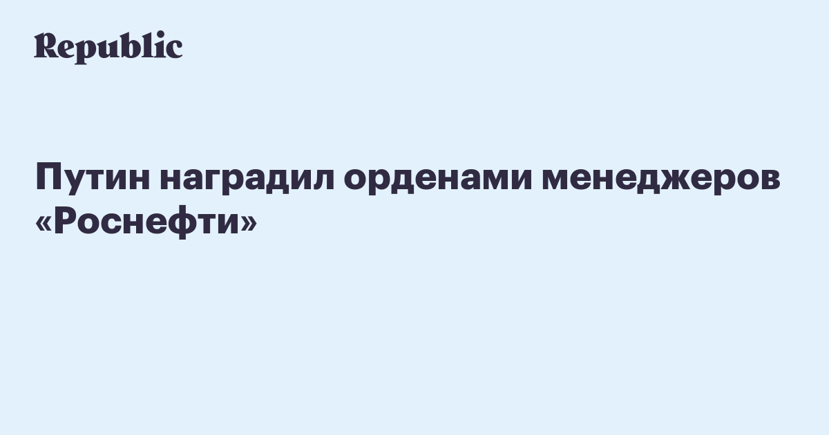 Ряд менеджеров «Роснефти», а также представители Газпромбанка и ВТБ получили правительственные награды «за большой вклад в развитие экономики страны, укрепление позиции России в глобальной нефтегазовой отрасли» и улучшение инвестиционного климата. Соответствующий указ президента РФ Владимира Путина опубликован 2 марта на официальном интернет-портале правовой информации.