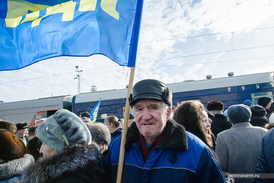 На Кировский вокзал поезд должен был прибыть в 12:15, но уже в 11:30 на платформе стояли человек 70. К полудню их число увеличилось до нескольких сотен. В основном это были люди пожилого возраста.