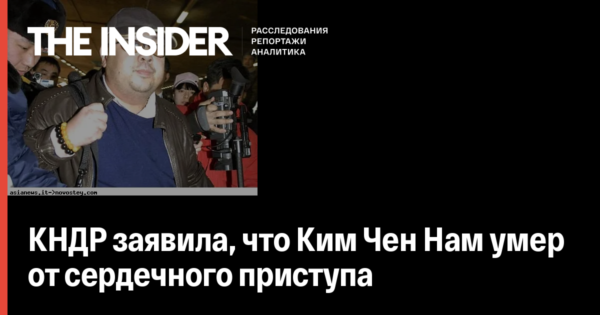 КНДР объявила, что причиной смерти Ким Чен Нама стал сердечный приступ. Об этом заявил представитель делегации Северной Кореи в Малайзии Ри Тонг Ир.