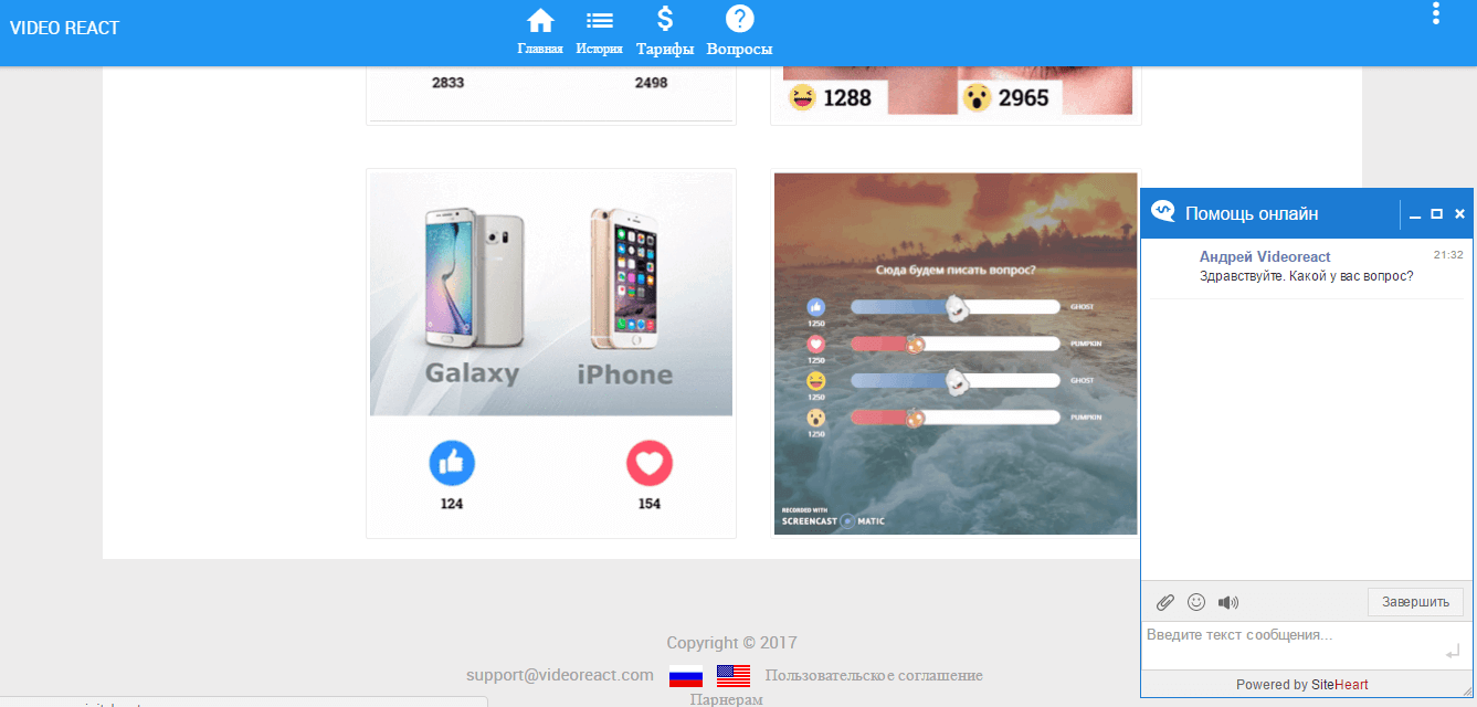 Сайт Videoreact.