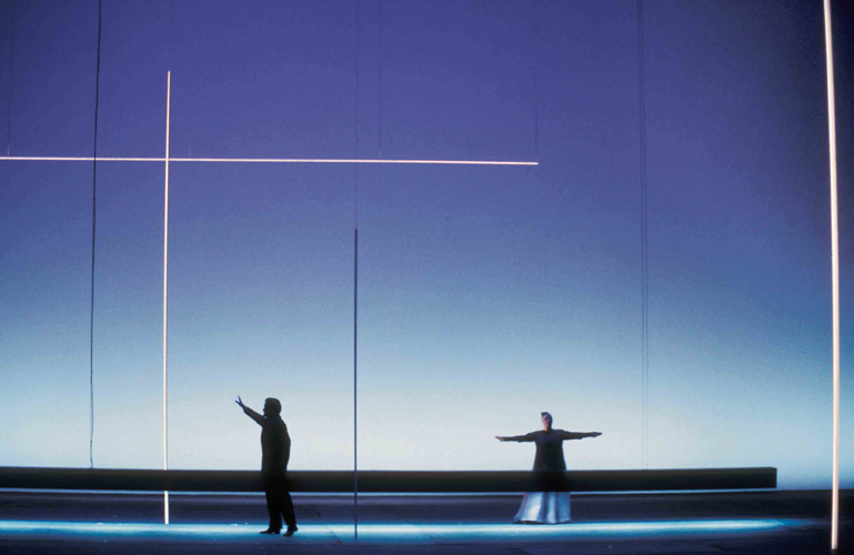 И вот тут бывают разные странные сближения, часто связанные просто с театральными нуждами. Все-таки «Эдип» — довольно многолюдная партитура: мужской хор, много солистов. А в «Герцоге» только два человека на сцене. И чаще всего его совмещают с такими же дуэтами. Или вообще с монооперами. В 80—90-х довольно часто он шел в паре с «Ожиданием» Шенберга («Erwartung» — монодрама для сопрано и оркестра. — Ред.). Именно так это поставил Боб Уилсон в Зальцбурге, и это была одна из лучших его зальцбургских постановок. Очень эмоциональная человеческая драма оказалась подморожена в его минималистских конструкциях — этот хорошо знакомый уилсоновский эффект абсолютно беспроигрышно там работал. И участие Джесси Норман в «Эрвартунге» производило совершенно завораживающее впечатление.