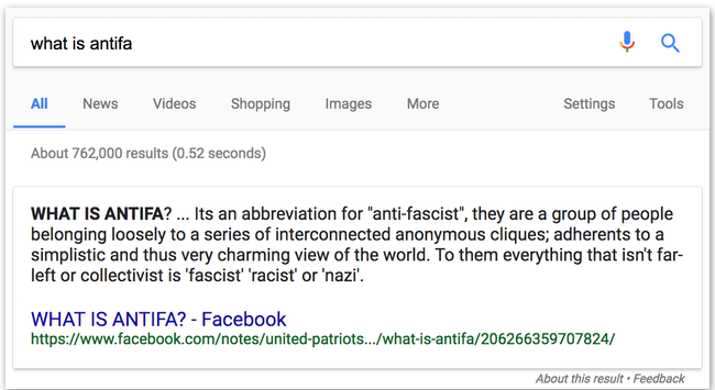 Поисковик Google уже несколько лет экспериментирует с выносом ответов на заданный пользователем вопрос прямо в поисковую выдачу — чтобы не приходилось кликать по ссылкам. Из-за шумихи вокруг фейковых новостей, которые активно распространяются через соцсети, журналисты издания Vice обратили внимание на содержание таких «быстрых ответов» от гугла. Обнаружилось, что с ними много проблем.
