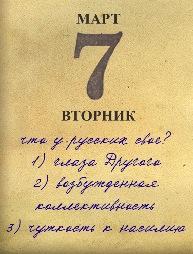 Потому что хотелось бы, конечно, видеть, что хотя бы за пределами РФ сохраняются большие контингенты русскоговорящих и читающих по-русски, которых не заворачивает по второму разу даже не к содержанию конкретной идеологии, а к этому возбужденному коллективизму, к неспособности посмотреть на себя глазами Другого, к готовности идти на действия, которые ведут к сегрегации, к быстрому производству в языке повседневности четких социальных стратификаций, обозначающих «правильные» и «неправильные» группы общества.