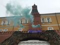 Кроме того, внутри Кремля участницы акции развернули плакаты с лозунгами "Женщину - в президенты", "Нас большинство", "Женщину - в патриархи", "Вся власть - женщинам". Баннер "Национальная идея - феминизм" активисткам удалось закрепить на Арсенальной башне Кремля. "Надписи были выполнены на юбках и платках, поэтому участницам удалось пройти досмотр", - говорится в сообщении.