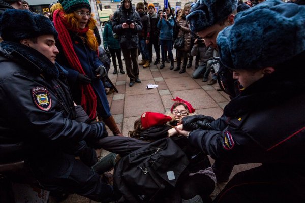 Задержанные во время феминистской акции в Санкт-Петербурге продолжают оставаться в 78 отделе полиции. Об этом сообщает Ирина Яценко.