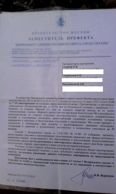 В конце января, префектура ЦАО отказалась согласовать пикет в поддержку Ильдара Дадина, ссылаясь на «непогрешимость судов». Отказ был обжалован, но суд признал решение префектуры законным.