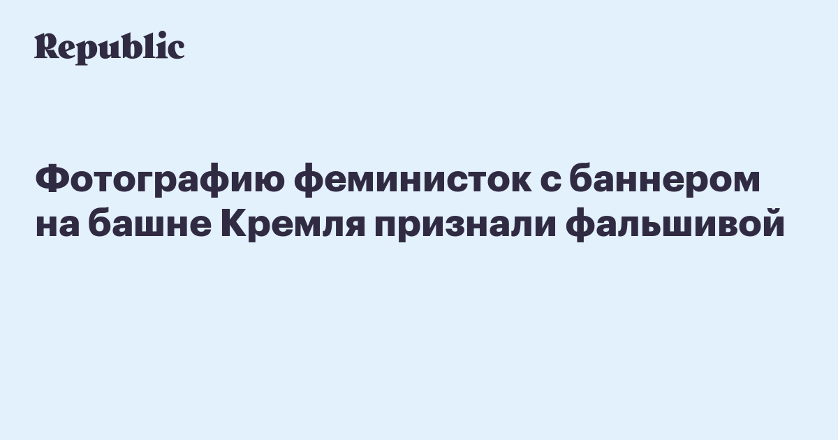 Фотографию феминисток с баннером на башне Кремля признали фальшивой