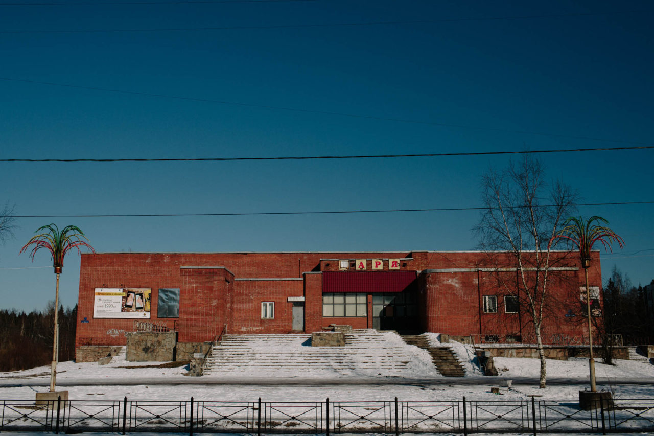 Саша удивляется отремонтированному Дому Культуры. Говорит, совсем недавно здание выглядело, как после бомбежки. Заходим внутрь — никого, кроме дежурной бабушки. На двери висит объявление о том, что здесь можно зарегистрировать брак.