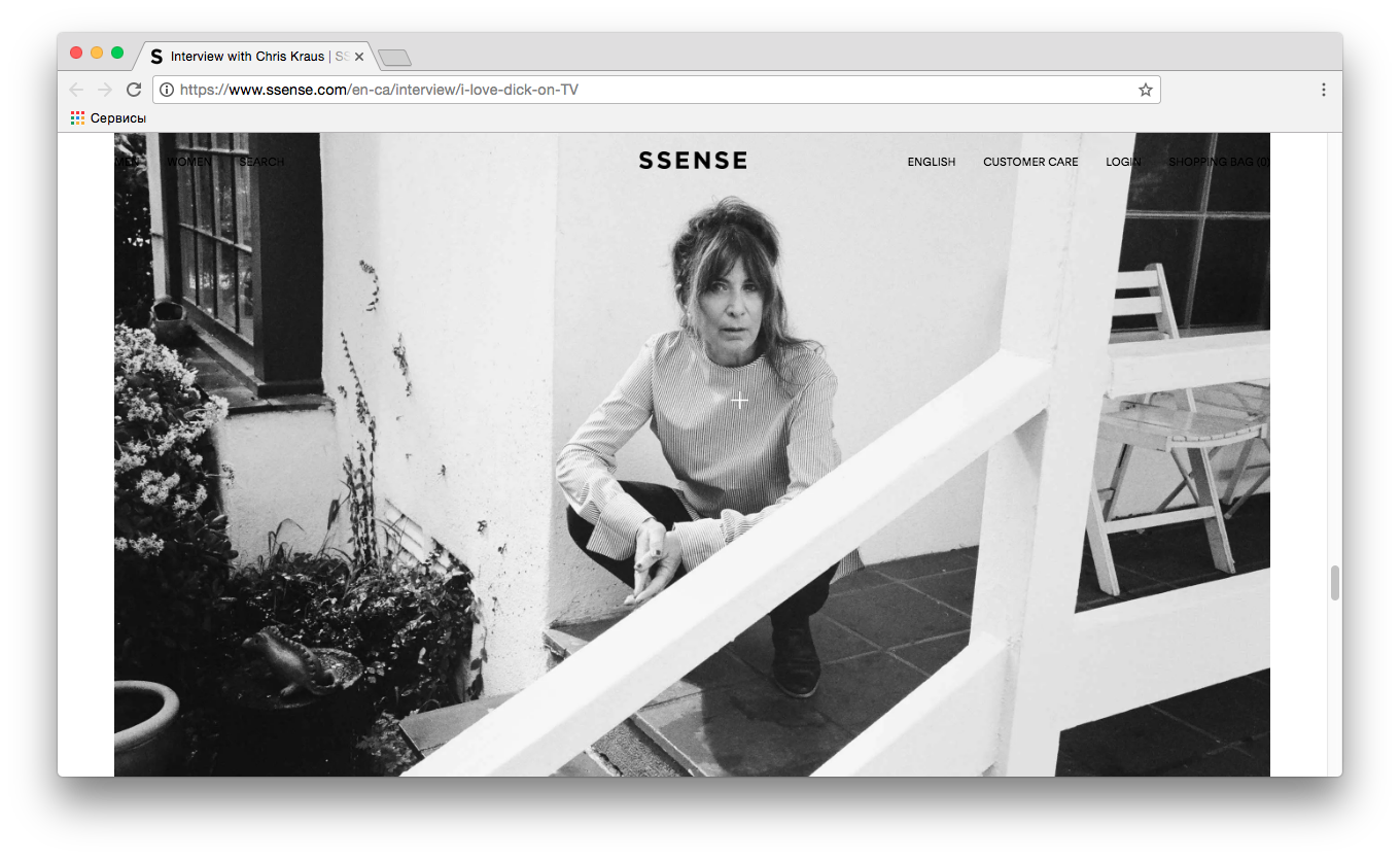 10. Издание Ssense интервьюирует американскую писательницу и сценаристку Крис Краус, автора романа «Я люблю Дика». Постмодернистский юмористический роман сейчас экранизировали: сериал выйдет в августе на Amazon. Разговор заходит об издательстве Semiotext (e), в котором Краус работает; издательство основал ее бывший муж, французский культуролог Сильвер Лотринже, благодаря которому американцы познакомились с Фуко, Лиотаром, Делезом, Гваттари и другими философами-постструктуралистами. «У Делеза есть отличная фраза, которую мы с Сильвером постоянно вспоминали: „Друг — это тот, кто позволяет вам увидеть свою безумную сторону”. Мы чувствуем, что предъявляем миру безумную сторону всех, кого публикуем». Кроме того, Краус делится соображениями о «Теории девушки» группы «Тиккун», недавно изданной и в России: «„Тиккун” избавляют термин „девушка” от гендерных и возрастных коннотаций и наделяет его верным значением: это экзистенциальное, консюмеристское состояние, ввергающее субъекта в постоянное желание приносить удовольствие и заставляющее его улыбаться и пропадать в пучине нужды». Этой самой «девушке» Краус рекомендует следующее чтение: Рэчел Нагельберг, Наташа Стагг, Джони Мерфи, Наташа Субраманьен, Сесилия Павон, Эмили Гулд, Шила Хети — а еще «Блеск и нищета куртизанок» Бальзака.