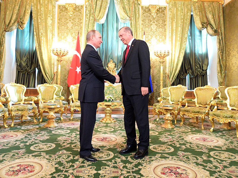 Путин отметил, что российско-турецкие связи "вышли на достойный уровень", напомнил о сотрудничестве в Сирии. "Очень приятно отметить, ведь никто не ожидал, что на уровне военных ведомств и спецслужб установится такой доверительный эффективный контакт", - сказал российский президент (здесь и далее цитаты по сайту Кремля).