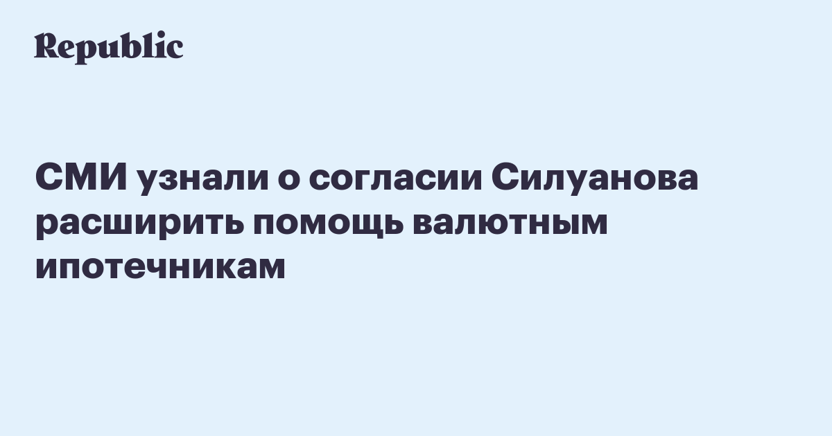 СМИ узнали о согласии Силуанова расширить помощь валютным ипотечникам