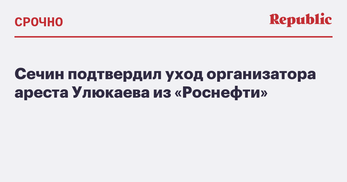 Сечин подтвердил уход организатора ареста Улюкаева из «Роснефти»