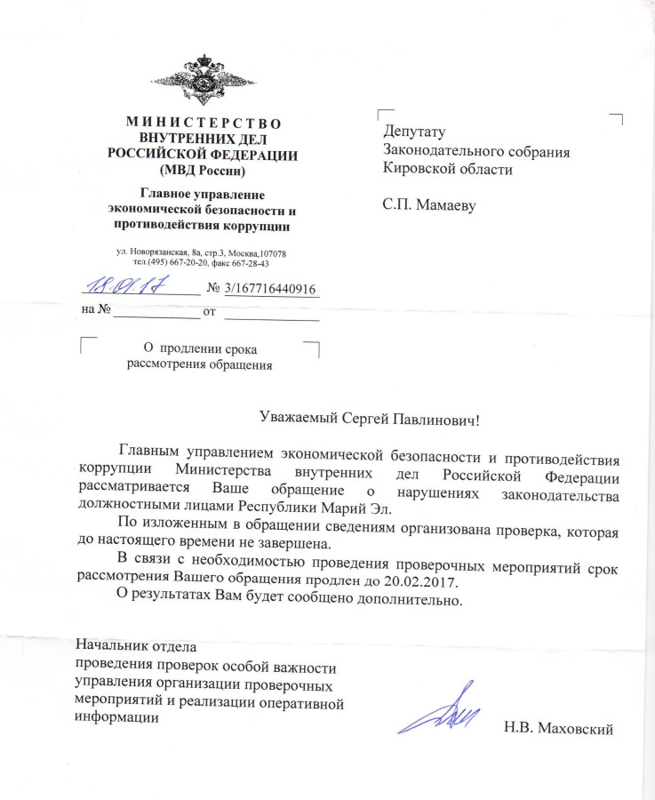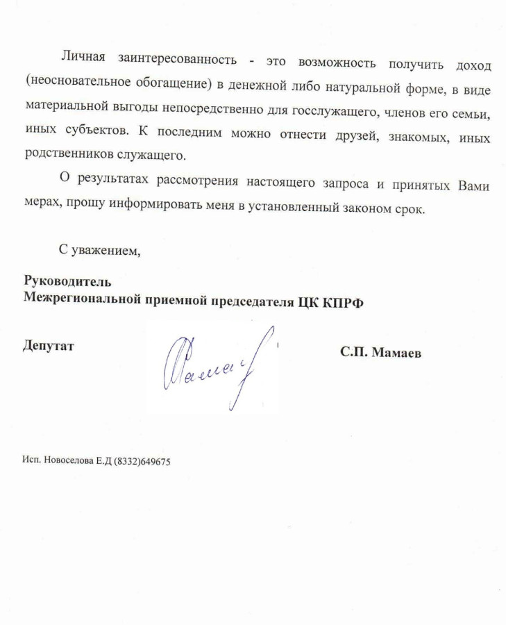 Срок проверки продлен до 10 апреля 2017 года. О результатах проверки руководитель Межрегиональной приемной Преседатель ЦК КПРФ Сергей Мамаев будет уведомлен дополнительно.