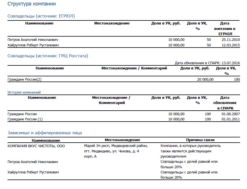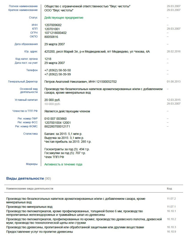 Лишь благодаря активному лоббизму со стороны своей матери-министра компания Роберта Хайруллова стала фактически монополистом в сфере производства и продажи бутилированной воды в Марий Эл. Кроме производства и продажи бутилированной воды, основным видом экономической деятельности компании “Вкус чистоты” является строительство, аренда и продажа имущества.